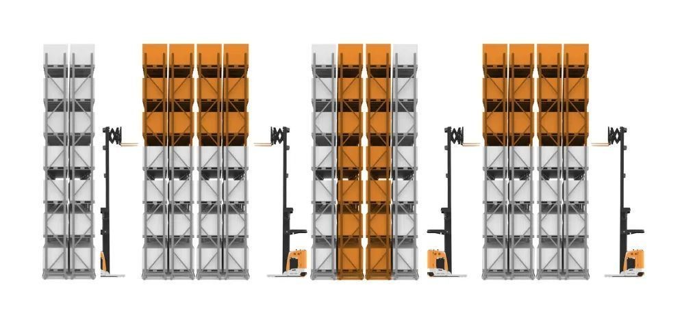 예를 들어, SKU마다 한 개의 팔렛만 있으면 이중 깊이로 변환하는 것은 의미가 없습니다. 왜?다른 SKU의 팔렛 뒤에 놓인 SKU를 검색해야 한다면, 당신은 그것을 복구하기 위해 첫 번째 팔렛을 이동해야합니다, 따라서 운영 효율성이 손실됩니다. 당신은 토티야 칩을 이동해야 할 필요가 없습니다 감자 칩에 도달하기 위해.